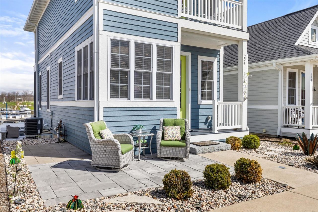 Experience the charm of coastal-inspired living in this beautifully designed Cape Cod cottage, perfectly positioned on the marina at Heritage Harbor with direct access to the Illinois River. Every inch of this home has been intentionally crafted to maximize both indoor comfort and outdoor enjoyment. From the moment you arrive, you'll appreciate the seamless blend of relaxation and functionality. Multiple outdoor living spaces create the ultimate retreat-featuring a custom paver patio with gas firepit, also gas line for grilling, front patio, a screened-in deck for bug-free evenings, and private upper-level escapes. The primary suite offers vaulted ceilings and its own private deck overlooking the marina, while the guest bedroom also features vaulted ceilings and a private balcony with scenic river views. Inside, the great room is filled with natural light, gas fireplace for cooler evenings and flows effortlessly through sliding glass doors to the screened porch, extending your living space. The kitchen is both stylish and efficient with quartz countertops, Bosch appliances, and a built-in banquet dining area designed for gathering and entertaining. Luxury vinyl plank flooring runs throughout, offering durability with a clean, modern aesthetic. Additional features include a lockable owner's closet, a generous 440 square feet of 6-foot-high storage space, tankless water heater, and thoughtfully integrated upgrades throughout. Located just steps from Heritage Harbor's marina, on-site restaurant, walking paths, pickleball courts, dog park, and live entertainment, this home offers a true resort-style experience. Plus, you're only 15 minutes from Starved Rock State Park, making it the perfect base for both relaxation and adventure. This is more than a cottage-it's a lifestyle on the water.